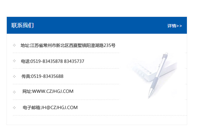 地址:常州市新北區友邦商務大廈1幢16、17層  電話:0519-85101652  傳真:0519-85112595  郵編:213022  網址:www_cz-jiayue_cn.junanconsult.com  郵箱:xiajifengaa@163.com